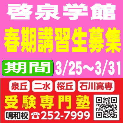 泉丘 二水 桜丘 石川高専 受験専門塾 啓泉学館 鳴和校