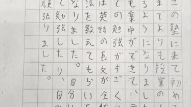 自分は予習をこの塾に来て初めてしたけど、そのおかげで今までよりも授業の内容が頭にスーと入ってくるようになりました。自習ブースでは家よりも集中できて、テストの勉強や入試に向けての勉強がすごくはかどりました。特に自分は英語の長文が全然できなかっ...